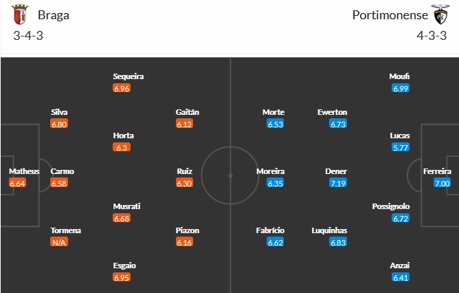 Đội hình dự kiến Braga vs Portimonense