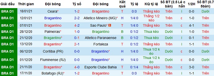 + Thống kê 10 trận gần nhất của Bragantino
