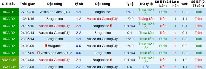 + Lịch sử đối đầu Bragantino vs Vasco da Gama