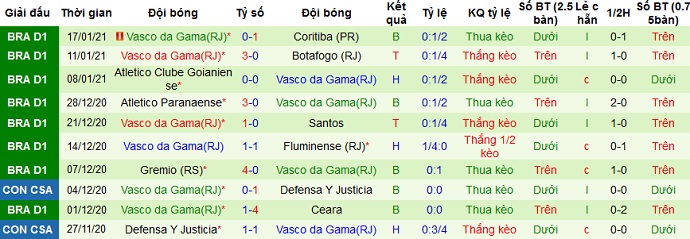 + Thống kê 10 trận gần nhất của Vasco da Gama