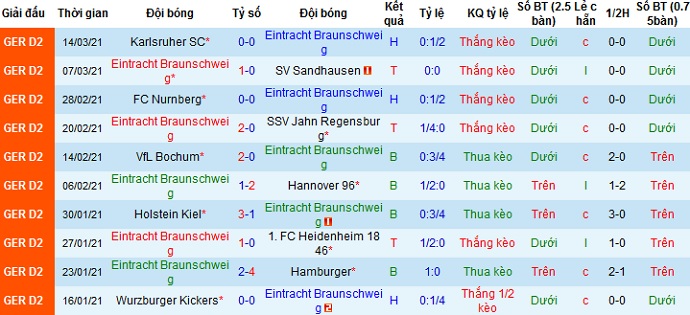 + Thống kê 10 trận gần nhất của Braunschweig