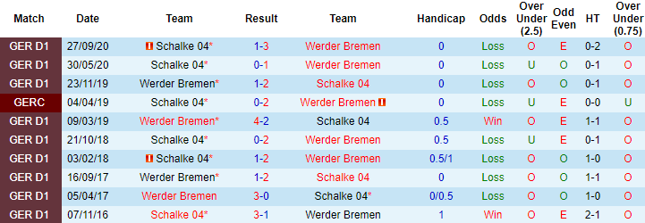 Phong độ và thống kê đối đầu Bremen vs Schalke