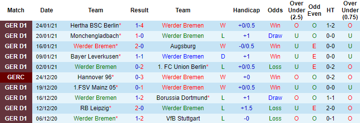 + Thống kê 10 trận gần nhất của Bremen