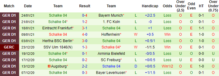 + Thống kê 10 trận gần nhất của Schalke