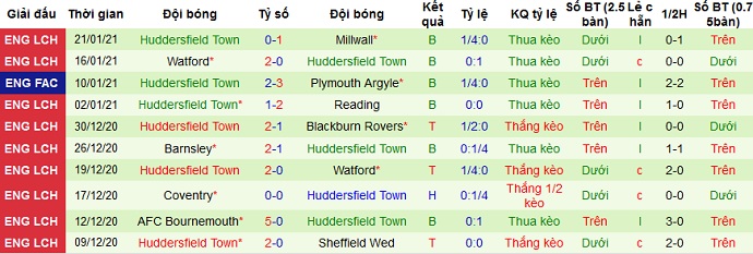 + Thống kê 10 trận gần nhất của Huddersfield
