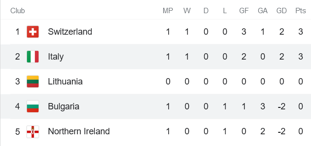 Bulgaria đã thua Thụy Sĩ với tỷ số 1-3 ở lượt trận đầu tiên của vòng loại World Cup 2022 khu vực châu Âu. So với Thụy Sĩ, Italia còn ‘cường đại’ hơn đáng kể. Sẽ không bất ngờ nếu Italia có được chiến thắng thứ 11 trước ‘nạn nhân’ quen thuộc này ngay tại xứ sở Hoa hồng.