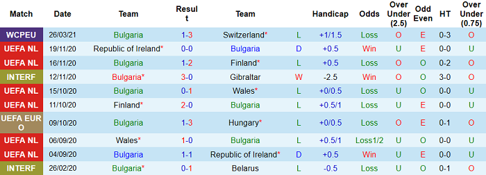 - Thống kê 10 trận gần nhất của Bulgaria