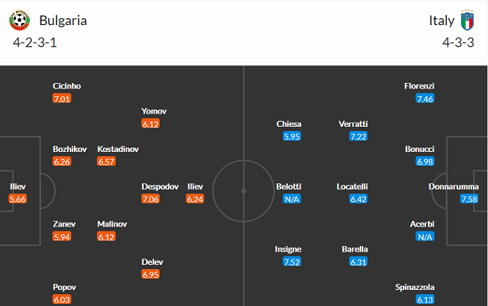 Đội hình dự kiến Bulgaria vs Italia