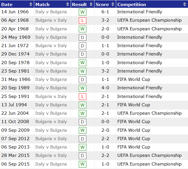 - Lịch sử đối đầu Bulgaria vs Italia