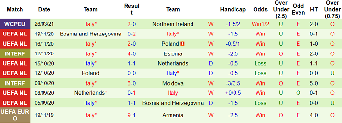 - Thống kê 10 trận gần nhất của Italia