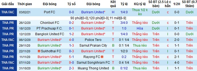 + Thống kê 10 trận gần nhất của Buriram United