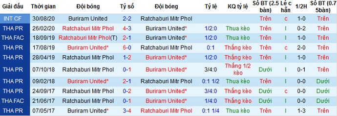 + Lịch sử đối đầu Buriram United vs Ratchaburi