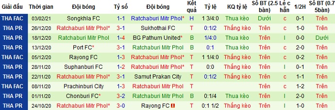 + Thống kê 10 trận gần nhất của Ratchaburi