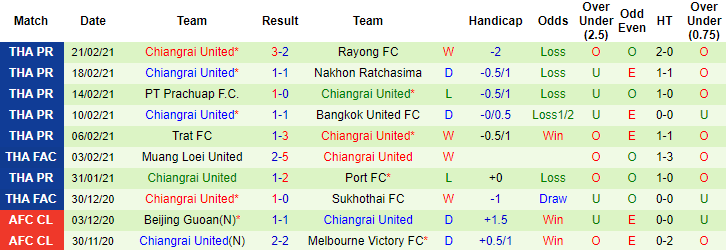 + Thống kê 10 trận gần nhất của Chiangrai