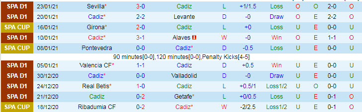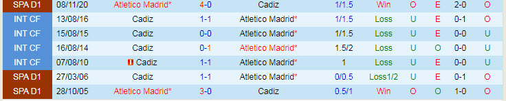Phong độ và thống kê đối đầu Cadiz - Atletico Madrid gần đây: