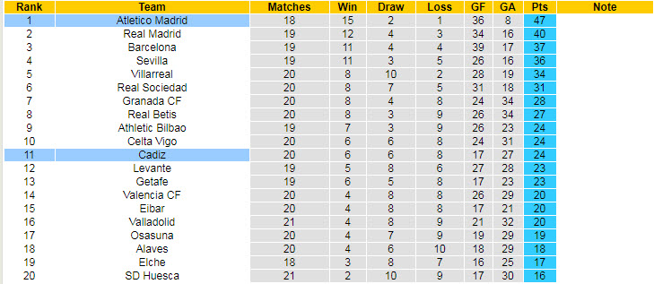 Trở lại với lượt trận cuối tuần này, đội bóng thành Madrid có chuyến hành quân tới sân của Cadiz và đây sẽ là cơ hội tốt để Atletico Madrid giành trọn 3 điểm. Nên nhớ, Cadiz đang là đội bóng có phong độ thất thường khi thắng đúng 1 trận trong số 9 trận vừa rồi tại mọi đấu trường tham dự.