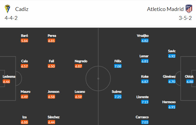 Đội hình dự kiến Cadiz vs Atletico Madrid: