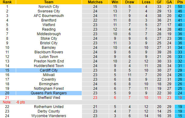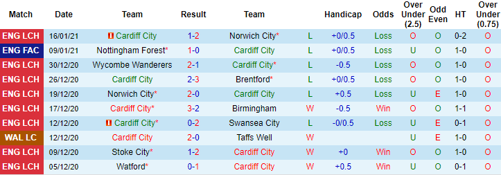 Hai lần tiếp đón QPR gần đây trên sân nhà, Cardiff toàn thắng, ghi 5 bàn và chỉ 1 lần để thủng lưới. Trên bảng xếp hạng Championship 2020/21, Cardiff đang xếp trên QPR 5 bậc. Cụ thể, chủ nhà xếp ở vị trí thứ 15 với 29 điểm, đội khách xếp thứ 20 với 24 điểm. Thành tích tốt hơn lại được đá trên sân nhà nhưng trận đấu sắp tới Cardiff vẫn không hứa hẹn vào khả năng giành chiến thắng.
