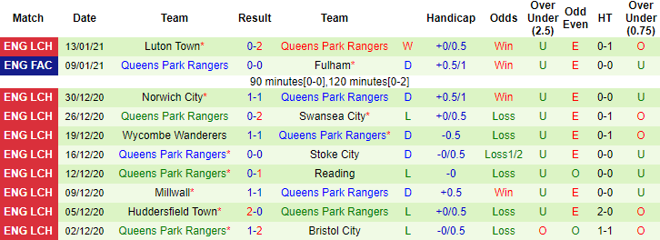 + Thống kê 10 trận gần nhất của QPR