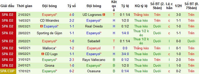 Hiện chuỗi trận bất bại của Espanyol đang kéo dài lên con số 7 trận liên tiếp nhưng trong đó đội bóng chỉ có được 3 trận thắng, để hòa 4 trận. Thành tích sân khách của đội bóng còn tệ hơn khi chỉ thắng 1, hòa 3 và để thua 1 sau 5 lần du đấu gần nhất.