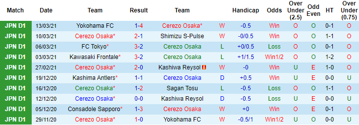 + Thống kê 10 trận gần nhất của Cerezo Osaka