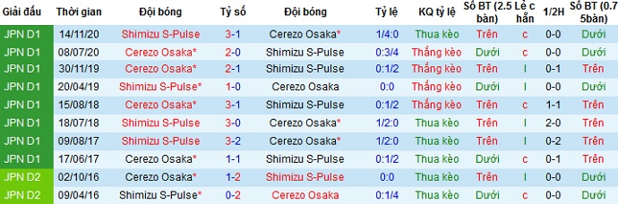 + Lịch sử đối đầu Cerezo Osaka vs Shimizu S-Pulse