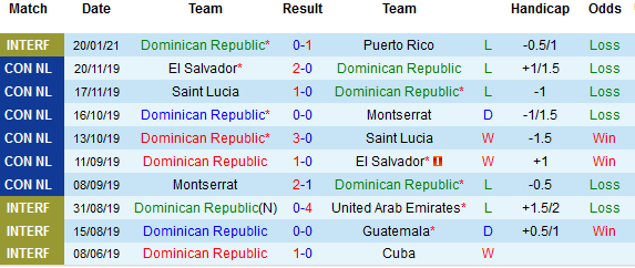 Liên tiếp cả 4 trận gần nhất Dominican đều không ghi được bàn thắng dù gặp những đối thủ vô danh cỡ như Saint Luca hay Montserrat.