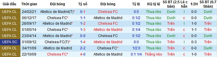 Tỷ lệ kèo Chelsea vs Atletico Madrid