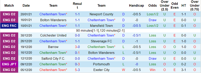 - Thống kê 10 trận gần nhất của Cheltenham