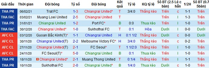 + Thống kê 10 trận gần nhất của Chiangrai United