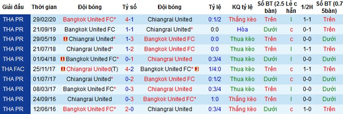 + Lịch sử đối đầu Chiangrai United vs Bangkok United