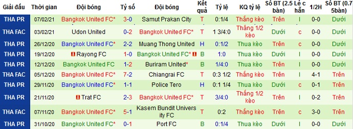 Tuy nhiên phong độ của Bangkok United lại trồi sụt rất thất thường. Trước khi khép lại năm 2020 đội bóng chỉ có được 1 trận hòa và 2 trận thua thì mới đây đội bóng đã có được 2 chiến thắng liên tiếp. Trên sân khách Bangkok United cũng có 2 trận thắng, 1 trận hòa và để thua 2 trận trong 5 lần du đấu gần nhất.