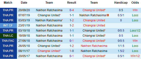 + Lịch sử đối đầu Chiangrai vs Nakhon Ratchasima
