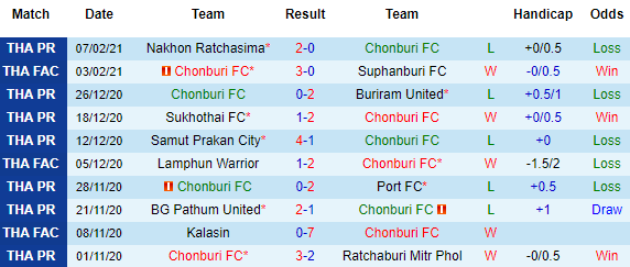 + Thống kê 10 trận gần nhất của Chonburi
