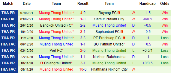 + Thống kê 10 trận gần nhất của Muang Thong
