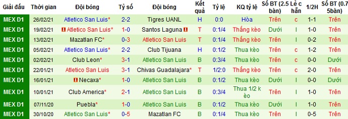 Cả hai đội đều có phong độ đang lên so với hồi đầu mùa giải. Tuy nhiên ở lượt đi San Luis vẫn đang bất bại trước Club Atlas với 1 trận thắng và 1 trận hòa. Thế nên chọn cửa dưới ở trận đấu này là hoàn toàn có cơ sở.
