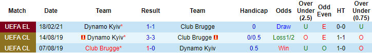 Phong độ và thống kê đối đầu Club Brugge vs Dynamo Kyiv