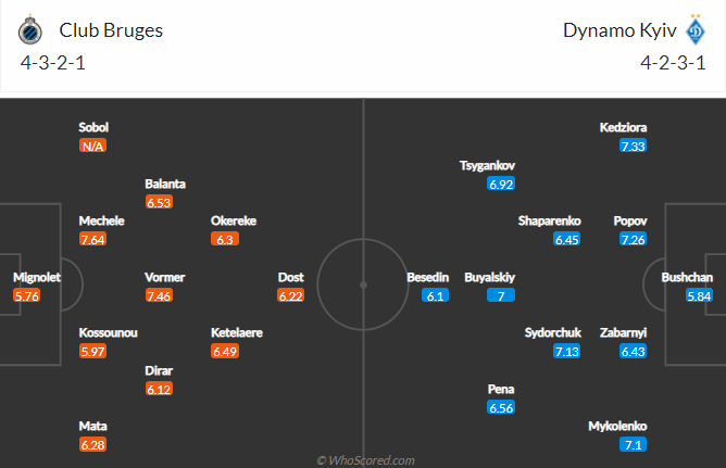 Đội hình dự kiến Club Brugge vs Dynamo Kyiv