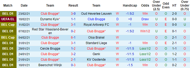 + Thống kê 10 trận gần nhất của Club Brugge