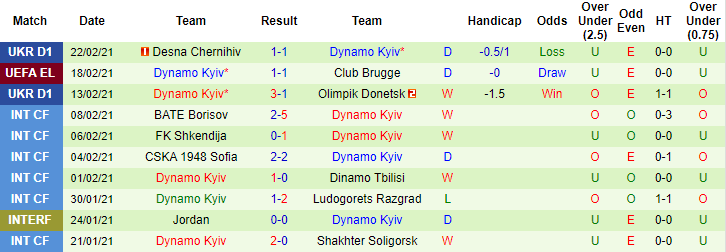 + Thống kê 10 trận gần nhất của Dynamo Kyiv