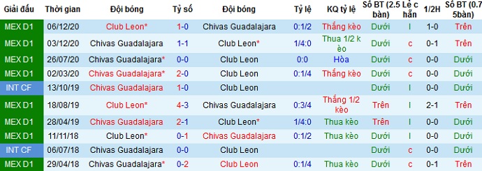 + Lịch sử đối đầu Club León vs Guadalajara Chivas