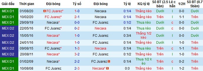 Trên sân nhà Club Necaxa cũng đã từng thắng 3 trong 5 lần gặp nhau trước đó. Tuy nhiên vấn đề chủ yếu ở đây là hiện tại FC Juárez đang có phong độ sân khách rất tồi nên đây có lẽ sẽ là cơ sở để lựa chọn cửa trên ở trận đấu này.