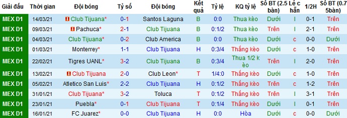 Ngay cả 2 trận thua mới đây trên sân nhà của Club Tijuana cũng là trước các đội bóng đang nằm trong Top 3 của giải đấu. Thế nên đây sẽ là cơ hội tốt để đội chủ nhà tìm lại cảm giác chiến thắng của mình và chọn cửa trên vẫn sẽ là lựa chọn có phần hợp lý hơn.