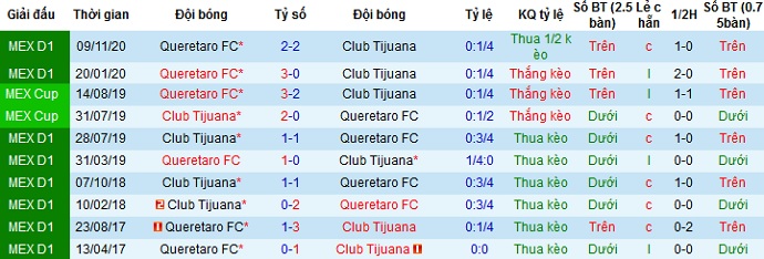 Tỷ lệ kèo Club Tijuana vs Querétaro