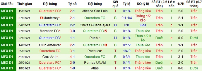 + Thống kê 10 trận gần nhất của Querétaro