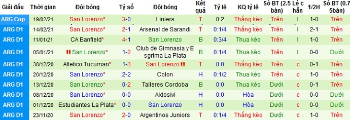 + Thống kê 10 trận gần nhất của San Lorenzo