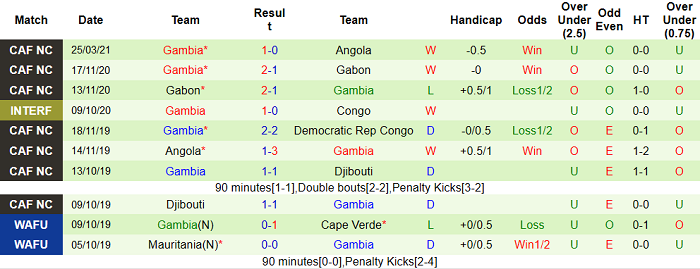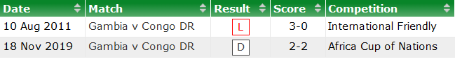 Gambia nỗ lực đánh bại Congo để nuôi hi vọng cạnh tranh vị trí nhất bảng D với Gabon. Với chất lượng nhỉnh hơn, Gambia hứa hẹn giành 3 điểm ở lượt đấu cuối cùng vòng loại CAN Cup 2021.