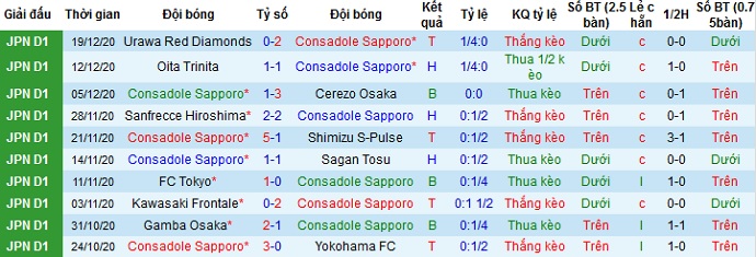 + Thống kê 10 trận gần nhất của Consadole Sapporo