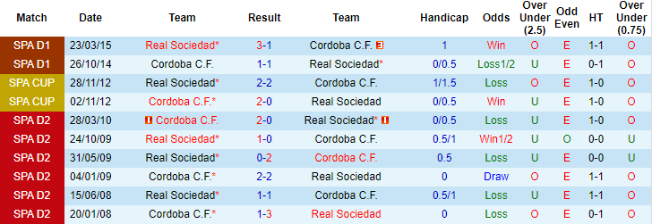 + Lịch sử đối đầu Cordoba vs Sociedad
