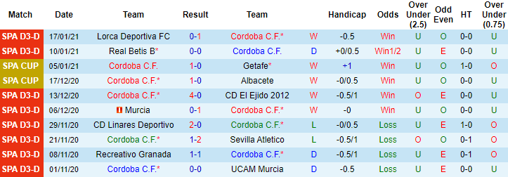 + Thống kê 10 trận gần nhất của Cordoba